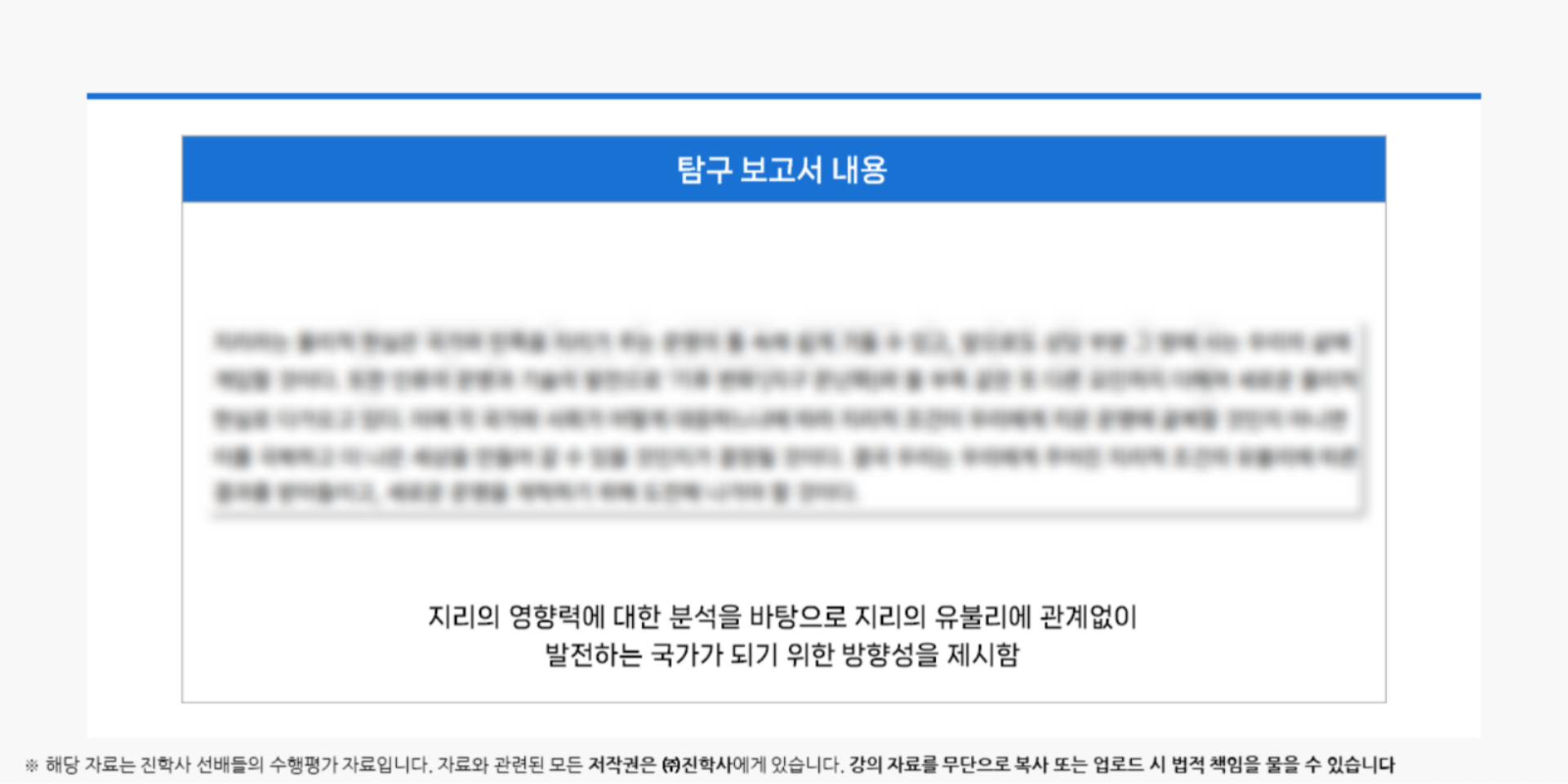 * 해당 자료는 진학사 <선배들의 수행평가> 자료입니다. 자료와 관련된 모든 저작권은 (주)진학사에게 있습니다.