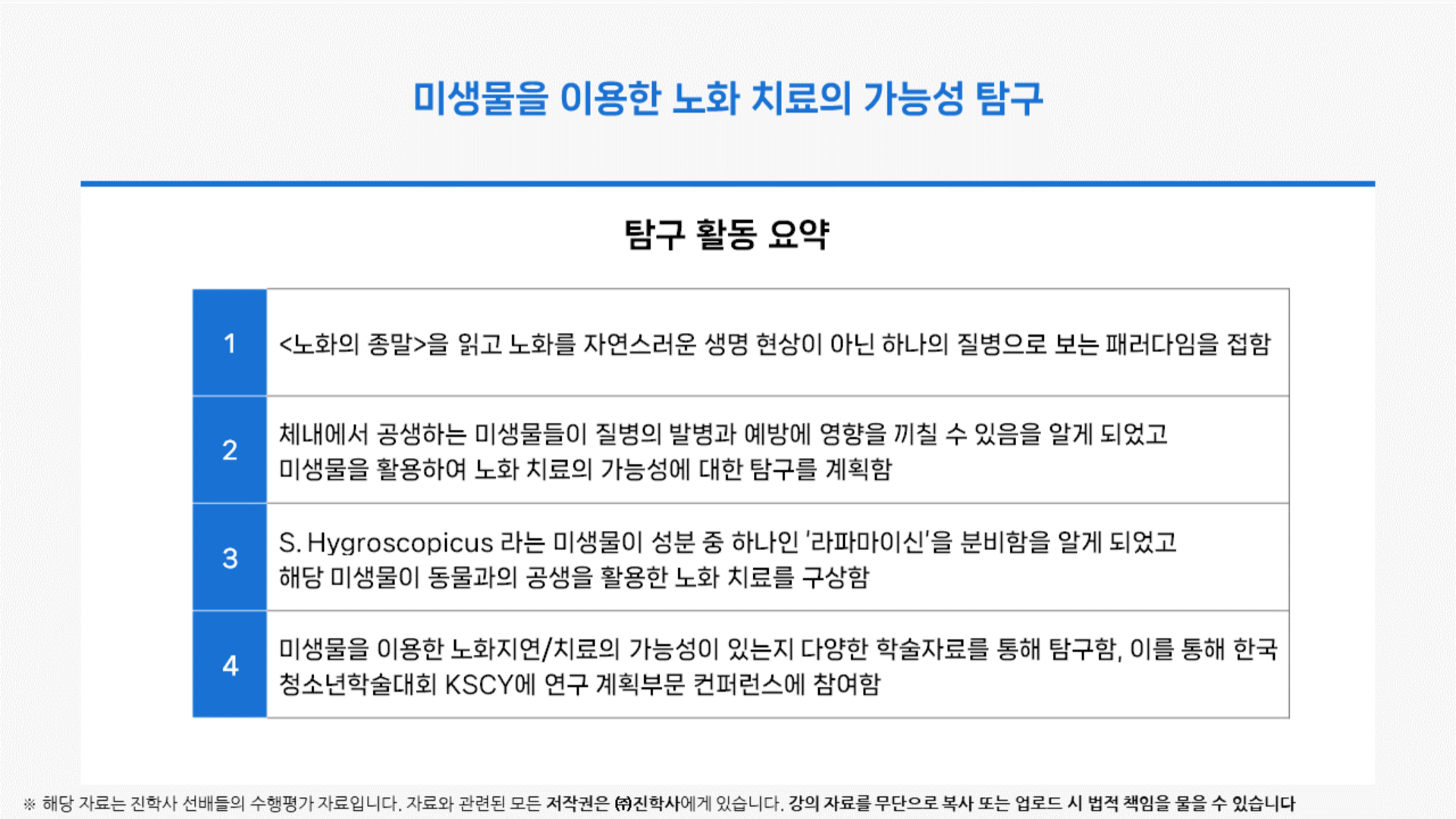 #노화 #노화의종말 #미생물 #라파마이신 #한국청소년학술대회 #KSCY #생명과학 #생명과학주제 #과탐탐구주제 #과탐자율주제 #과탐보고서주제 #생명과학자율주제 #생명과학보고서주제 #생명과학보고서 #인어가잠든집 #아무도죽지않는세상 #도서추천 #인공장기 #나노기술 #로봇공학 #인공지능 #세특 #과탐세특주제 #과탐세특 #세특보고서 #과탐보고서 #생명과학세특