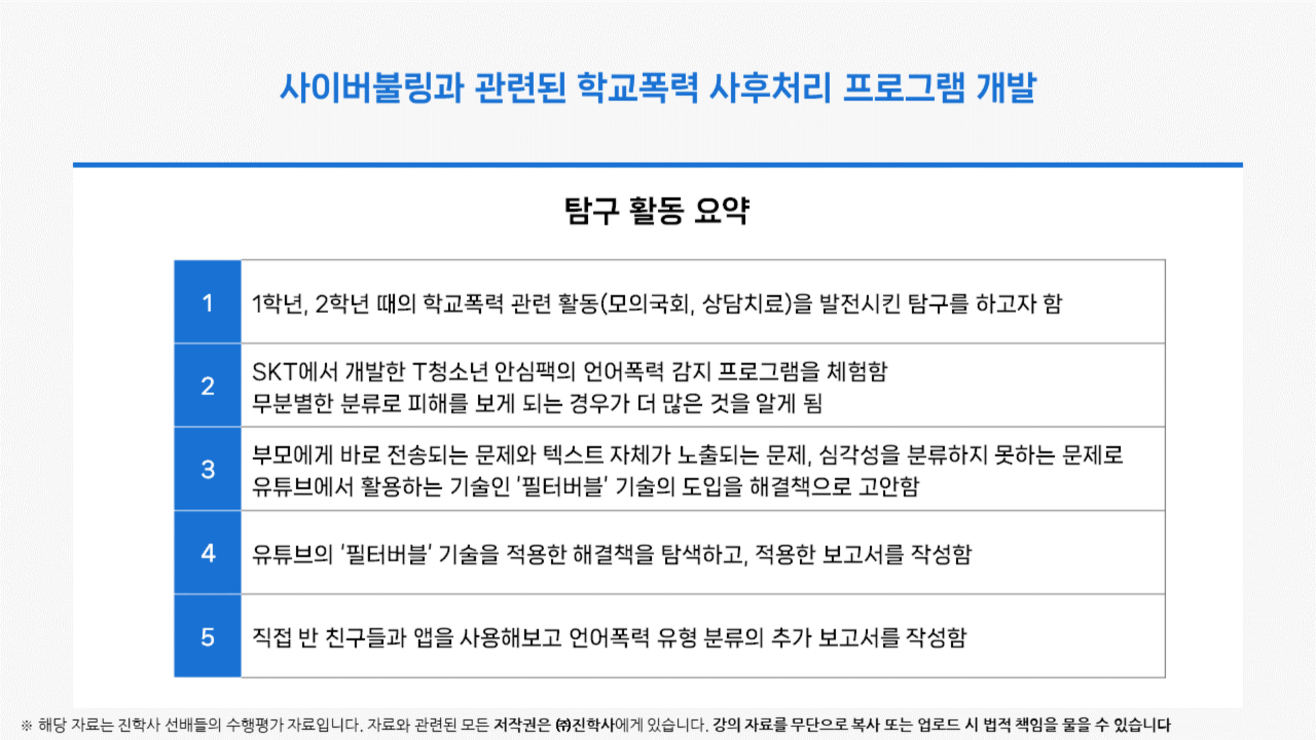 #고등학교 #고등학생 #고등 #수행평가 #수행평가주제 #세특 #생기부 #사회탐구 #동아리 #사회문제 #사회 #학교폭력 #학교문제 #폭력 #사이버불링 #온라인폭력 #언어폭력 #필터버블 #상담치료 #치료 #교육학과 #교육 #선생님 #교사 #교육공학 #임용고시 #언어습관 #탐구활동 #탐구 #자유주제 #문과 #이과 #자연 #공학 #학종 #학생부종합 #학생부종합전형 #서울대 #연세대 #고려대 #멘토 #멘토링 #내신관리 #생기부관리 #합격예측 #수시 #정시 #생기부 #진학사 #진학사수시 #수험생 #일반고 #수시전형