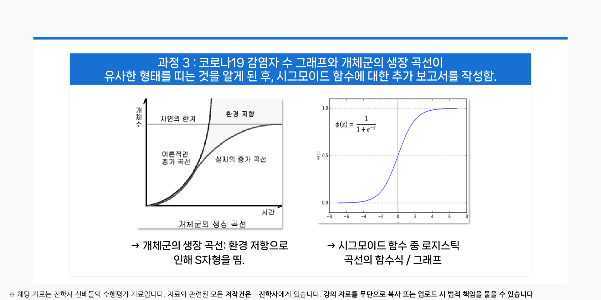 「 코로나19 감염자 수 그래프와 개체군의 생장 곡선이 유사한 형태를 띠는 것을 알게 된 후,