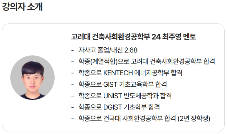 #진학사멘토링 #대학생멘토링 #고려대건축사회환경공학부 #고려대멘토 #고려대24학번 #수시 #학생부종합전형 #자사고 #세특주제추천 #탐구주제추천 #건축학과 #건설환경공학과 #사회환경공학부 #반도체공학과 #에너지공학부 #토목공학