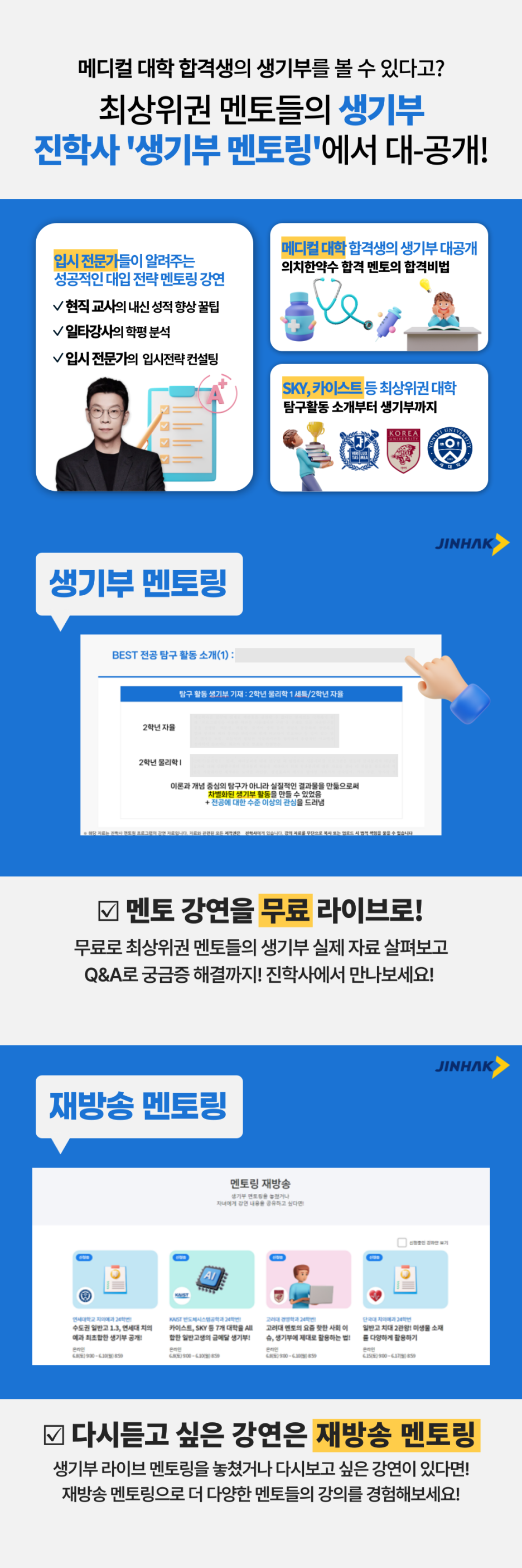 생기부 멘토링 진학사 최고의 멘토들의 내신, 생기부 노하우를 라이브로 들어보세요!