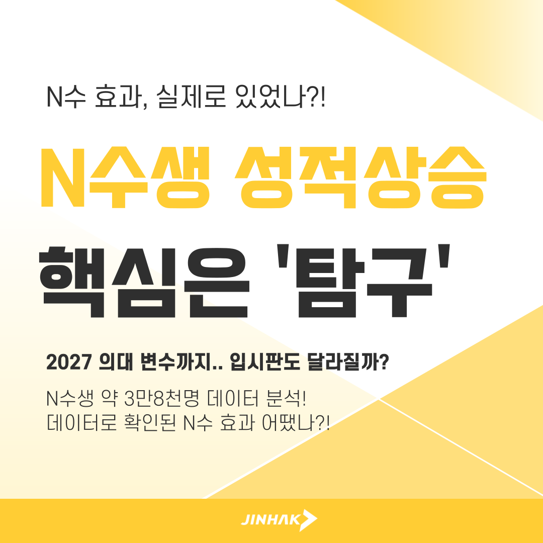 📊 N수생 성적 상승, 핵심은 ‘탐구’였다.. 2027 의대 변수까지… 입시 판도 달라질까?진학사/진학사 입시클리핑 2026. 2. 12. 15:38